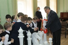 - Если честно, я вам завидую. Мне бы тоже хотелось сыграть такими шахматными фигурами. – сказал Александр Ермаков. – Всю жизнь мечтал попробовать. Надеюсь, такая возможность мне представится, а вы, ребята, можете теперь играть в них постоянно. Вы еще совсем маленькие, некоторые ростом с эти фигуры. Уверен, этот день станет для вас одним из самых памятных. Потом будете своим детям рассказывать, что стали первыми в Саянске шахматистами, игравшими такими фигурами. Шахматы – игра математическая, развивающая мышление, память, внимание. Для вас созданы прекрасные условия, пользуйтесь ими, цените, уважайте педагогов, которые помогают осваивать шахматную науку. Это непростая игра, но, научившись, преодолев, трудности, вы поймете, какая это замечательная, интересная игра.