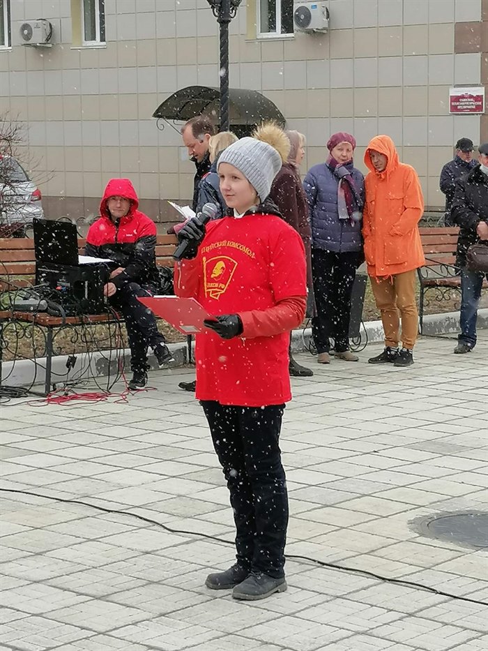 Первый секретарь Саянского городского отделения КПРФ Юлия Самохвалова вручила комсомольские значки и партбилеты новым саянским комсомольцам.
