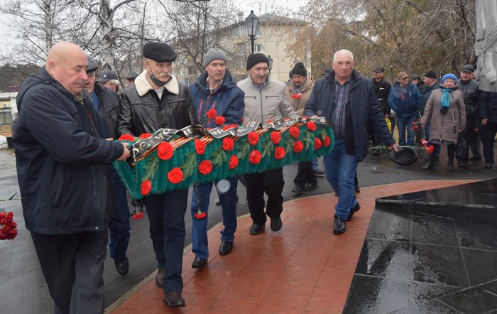 Участники мероприятия почтили память об ушедших минутой молчания, возложили памятную гирлянду и гвоздики к подножию стелы в сквере ветеранов.