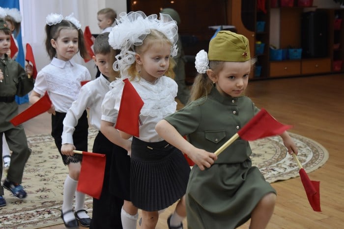 Маленькие артисты постарались на славу. Ребята пели, танцевали, читали стихи. Как рассказала заведующая детским садом Анастасия Морозенко, при подготовке праздника были задействованы ребята средних, старших и подготовительной группы. К мероприятию все готовились волнительно и ответственно. Мальчишки и девчонки, примерив на себя военную форму, с гордостью кружились в вальсе, проникновенно читали стихи. Затаив дыхание зал слушал выступление вокальной группы педагогов дошкольного учреждения. Знаменитые песни военных лет в исполнении очаровательных девушек обрели в этот день другое звучание.