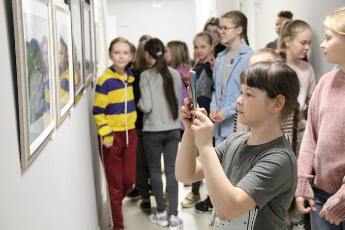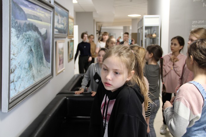 Воспитанники художественного отделения школы искусств восторженно рассматривают каждое произведение своих учителей, восхищаются гармонией, точно переданным настроением изменчивого озера.