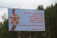 Саянск готов к празднованию 76-й годовщины Победы в Великой Отечественной войне. Город украшен разноцветными флагами и баннерами с поздравлениями. В центре города, на торговой площади горожан с праздником Победы поздравляет мэр города Олег Боровский: «День Победы – великий праздник для каждого из нас! Из поколения в поколение мы передаем эстафету благодарности за подвиг, за спасение, за свободу! Пусть небо над нами всегда будет мирным! »