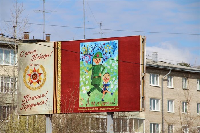 На центральных улицах городское пространство украшают и создают праздничное настроение, баннеры с рисунками детей, ставшими победителями городского конкурса детского рисунка «С Днем Победы» и музейной акции «Открытка на подъезд». Идея украсить подъезды пришла сотруднику галереи Светлане Паниной: «День Победы – это праздник каждой семьи, каждого дома, − говорит Светлана Александровна. – Человек заходит в подъезд и видит поздравительную открытку, она напоминает о Великом дне и создает патриотическое настроение».