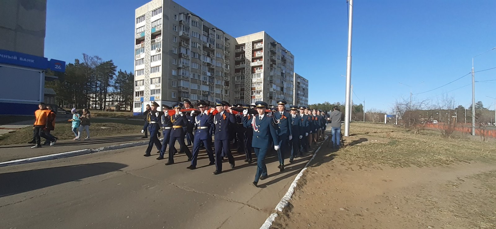 Сегодня по городу прошел марш георгиевской ленты – старшеклассники в парадной военной форме разных родов войск в торжественном марше под звуки военных мелодий пронесли символ Победного Мая – георгиевскую ленту. Прохожие останавливались, наблюдая шествие, приветствовали колону. Волонтеры школ и городского отряда "Мы вместе" раздавали ленточки саянцам.
