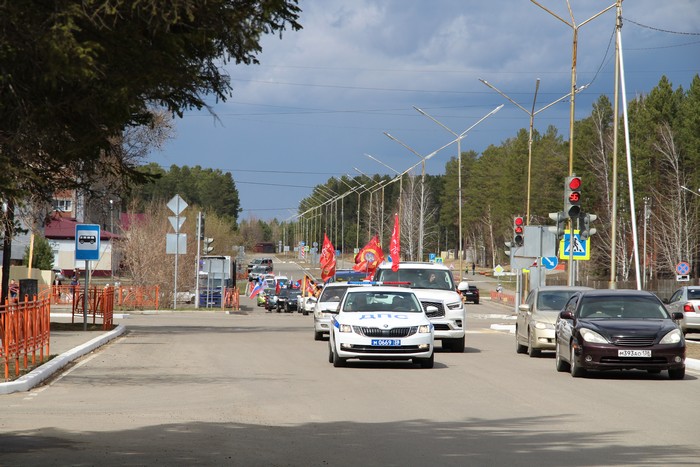 По маршруту следования торжественной колонны проехали и обычные саянцы, не пожелавшие оставаться в стороне от очередной возможности отдать дань памяти и уважения советским воинам и саянские байкеры.