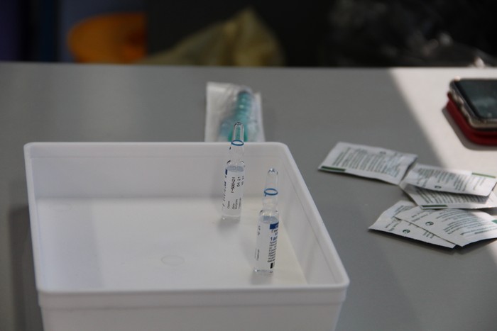 Как рассказали сотрудники мобильного медицинского центра, ежедневно они запасаются сотней доз вакцины, и к концу смены не остается ни одной.