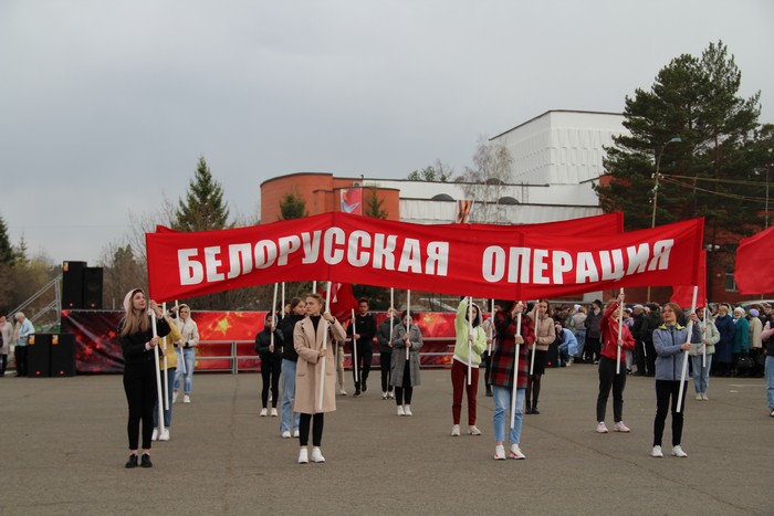 Генеральная репетиция торжественного митинга и концертного марафона «Победа, которую нам завещали» проходят на городской торговой площади Саянска. Артисты и ведущие мероприятия оттачивают свои выступления, музыканты настраивают аппаратуру, организаторы определяют место каждому участнику праздничной программы.