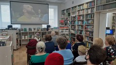 На фронте солдаты напевали свои любимые песни по гармонь. Слушатели посмотрели видеозапись отрывка из поэмы Александра Твардовского «Василий Теркин» в исполнении солистов Иркутского областного музыкального театра им. Загурского под названием «Гармонь».