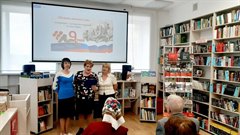 В преддверии Дня Победы в модельной библиотеке «Истоки» прошла литературно-музыкальная программа «Мотивы военных лет». Фронтовая песня создала атмосферу военных лет для жителей микрорайонов Мирного и Ленинградского, представителей организаций «Дети войны» и Совета ветеранов.