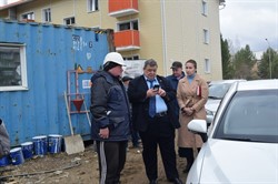 Мэр города Олег Боровский совместно с заместителем мэра Марией Даниловой, руководителем службы подготовки и обеспечения градостроительной деятельности Иваном Полынцевым, председателем городской думы Юрием Перковым проинспектировал строительные площадки города.