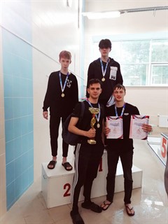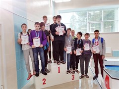 В эстафетном плавании 5 по 50 метров вольным стилем среди юношей победителем стала команда школаы №4 им. Д. М. Перова. На второй ступени школа №3, замыкает тройку призеров школа №2.
