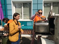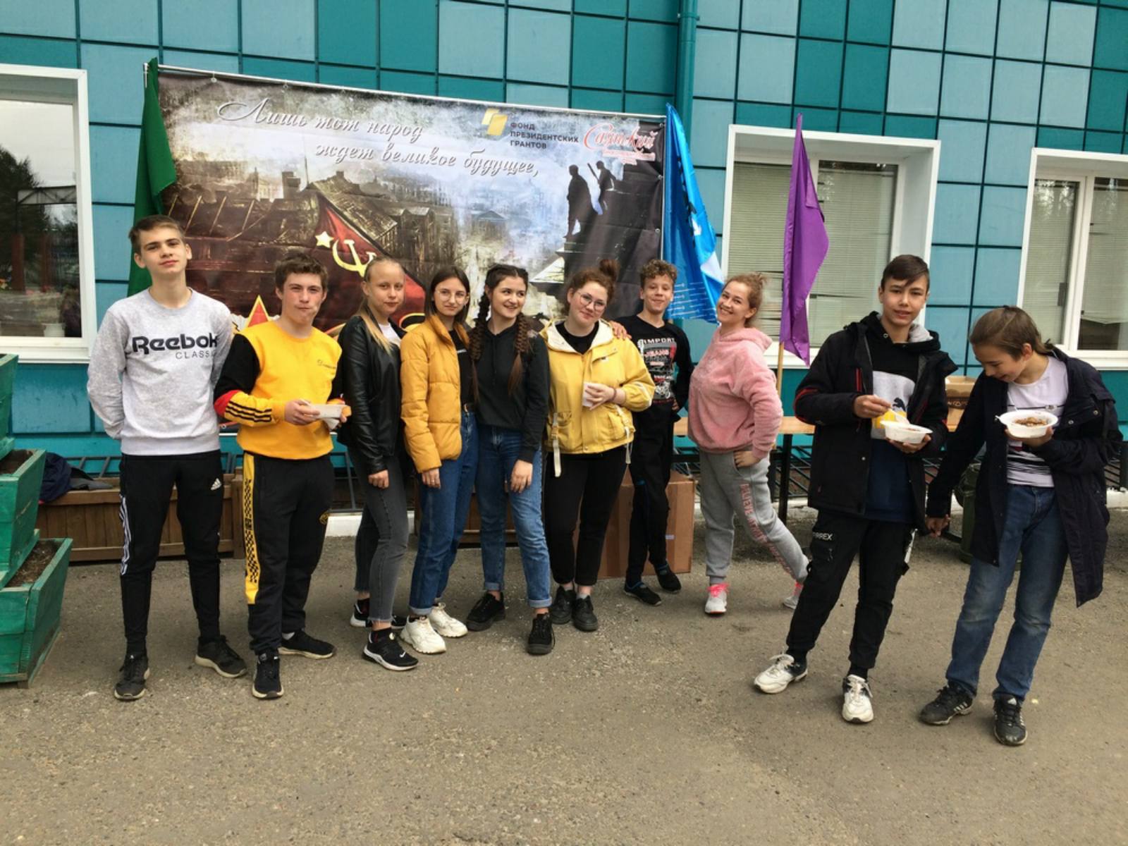 В проведении мероприятия помогали волонтеры. На полевой кухне работали Арина Ромашова и Ксения Калайда из городского отряда волонтеров «Мы вместе» ДДТ «Созвездие». Для оказания медицинской помощи дежурили медики-волонтеры из Саянского медицинского колледжа: Александра Подойницына, Данил Уткин и Диана Кашкарева.