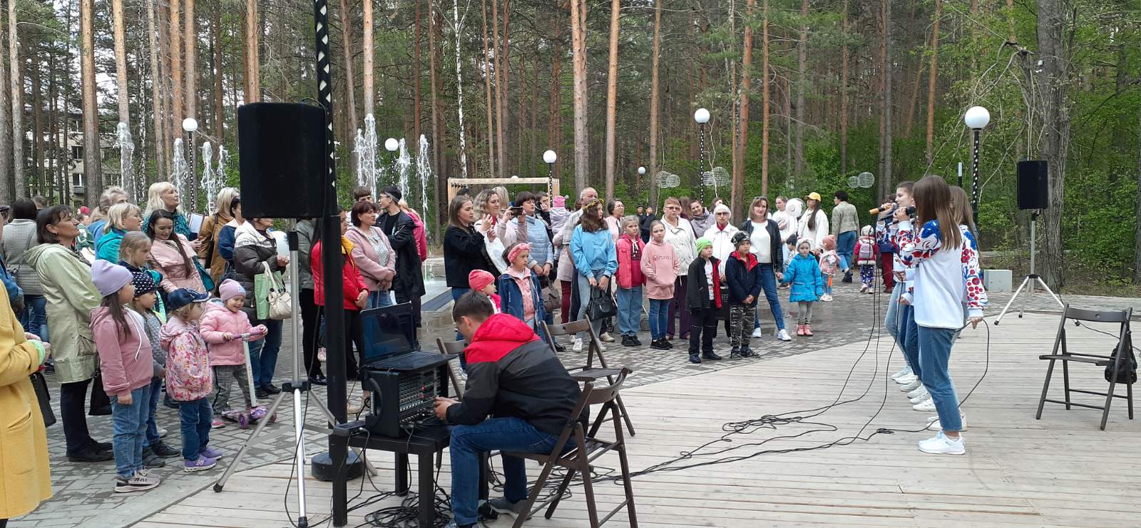 Светящиеся струи фонтана, волшебная живая музыка, игровые площадки для ребятни - вечер в парке был пронизан летним настроением и праздничным духом.