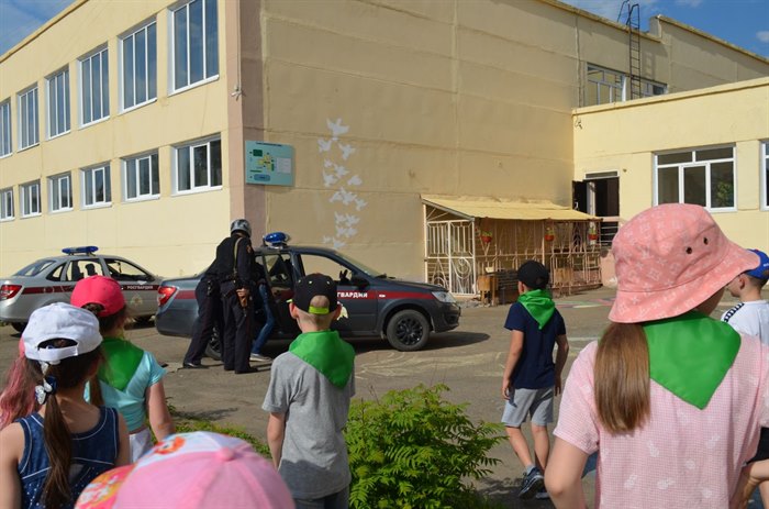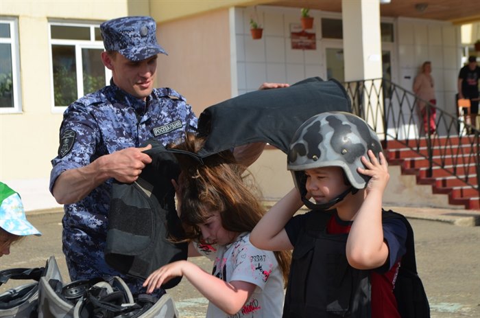 Росгвардейцы подготовили для ребят показательное задержание правонарушителя, чем очень их впечатлили. После дети сами смогли почувствовать себя бойцами, они примерили на себя настоящую экипировку.
