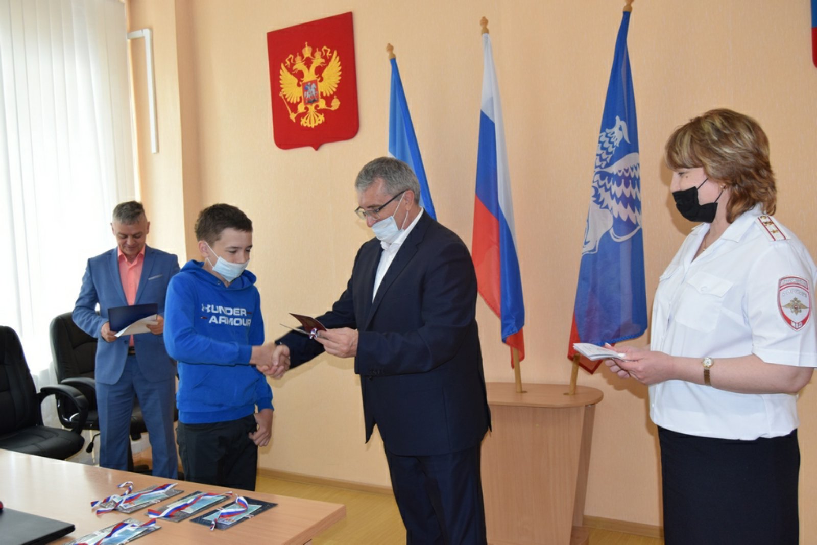 Александр Владимирович вместе с представителем саянского отделения миграции МВД России Ларисой Рыбаковой вручили десяти ребятам паспорта и обложки от партии «Единая Россия».