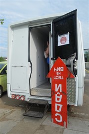 Для того, чтобы решить эту проблему, ежегодно «Иркутским областным центром по профилактике и борьбе со СПИД и инфекционными заболеваниями» проводятся выездные акции с тестированием на ВИЧ и вирусные гепатиты. Сдать анализы можно было любому желающему саянцу в понедельник, 21 июня, на городской площади. Специалисты мобильной лаборатории проводили дотестовую консультацию обратившихся, таких было всего 20 человек.
