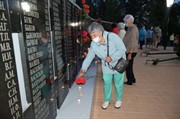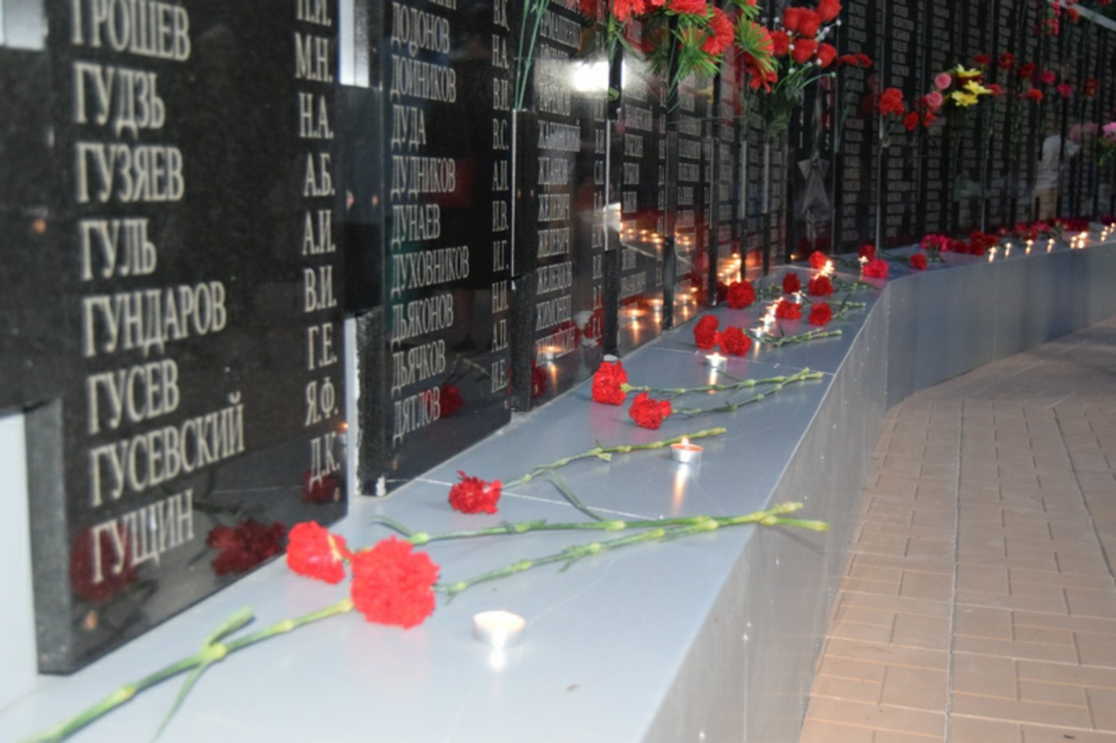Минутой молчания почтили саянцы память о павших в годы Великой Отечественной войны, возложили цветы и поставили свечи к подножию стены памяти.
