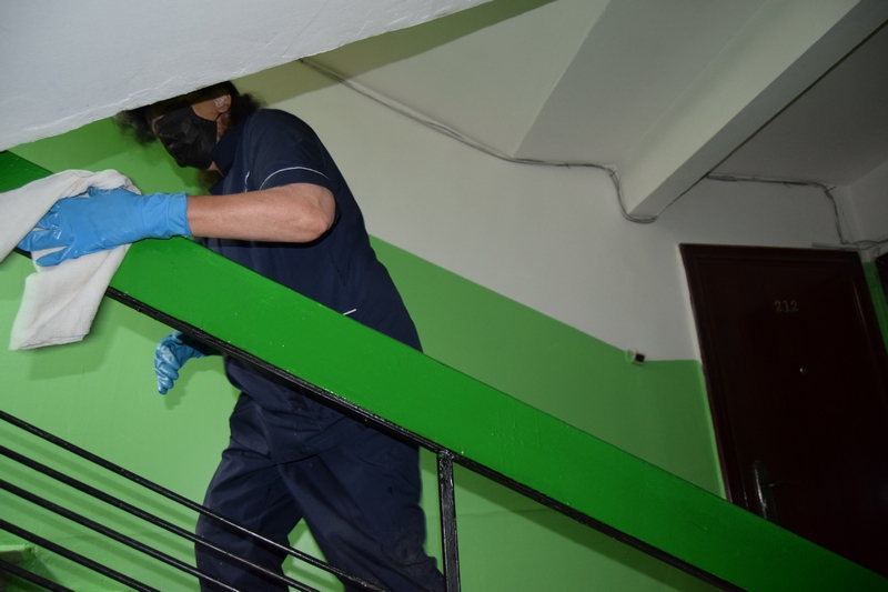 Как рассказали коммунальщики, санобработку они проводят по графику. Работники управляющей компании «Уют» трижды в неделю обрабатывают в подъездах многоквартирных домов перила на всех этажах, кнопки домофона и вызова лифта, дверные ручки, почтовые ящики – все, чего жители касаются руками.