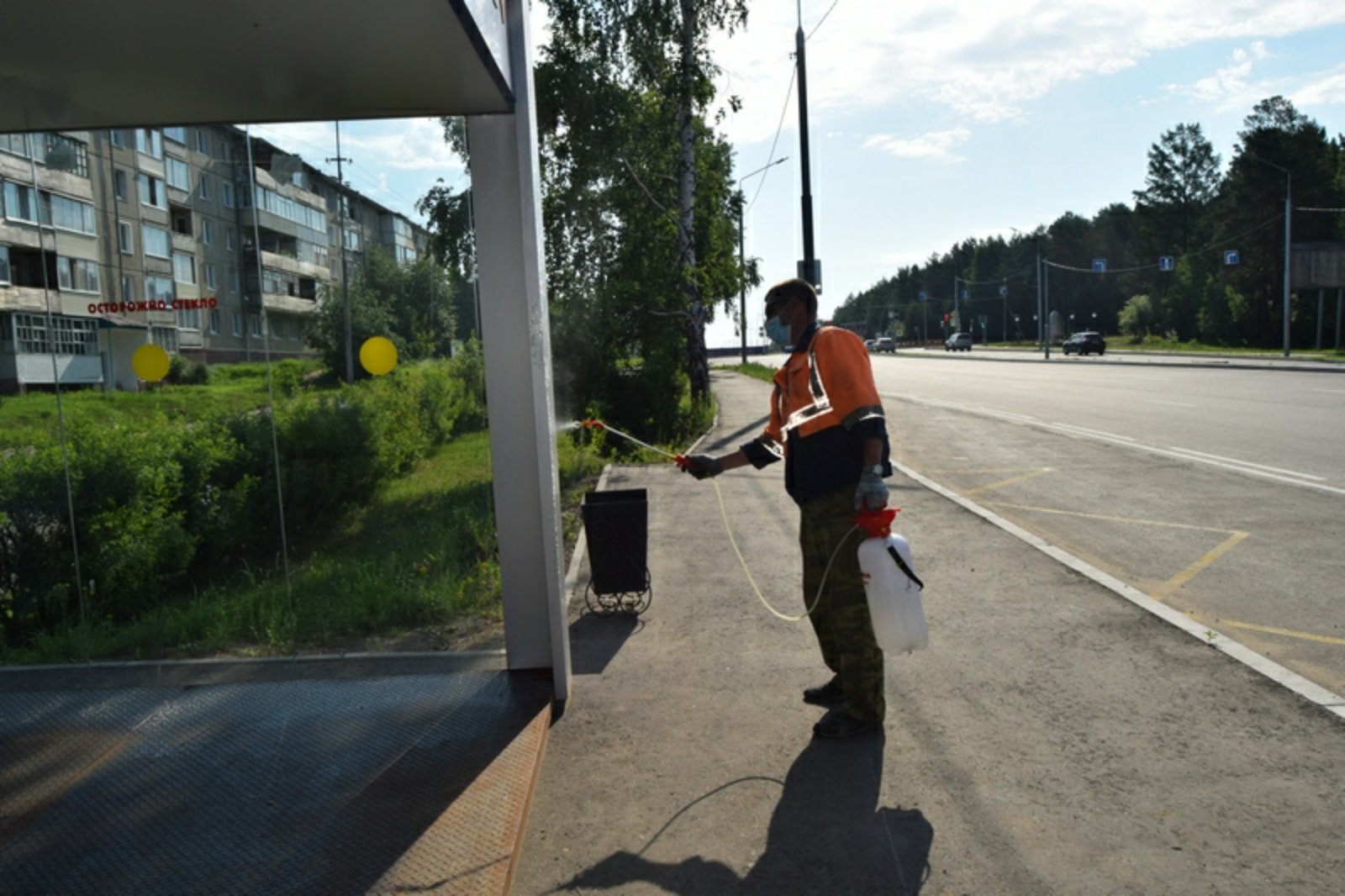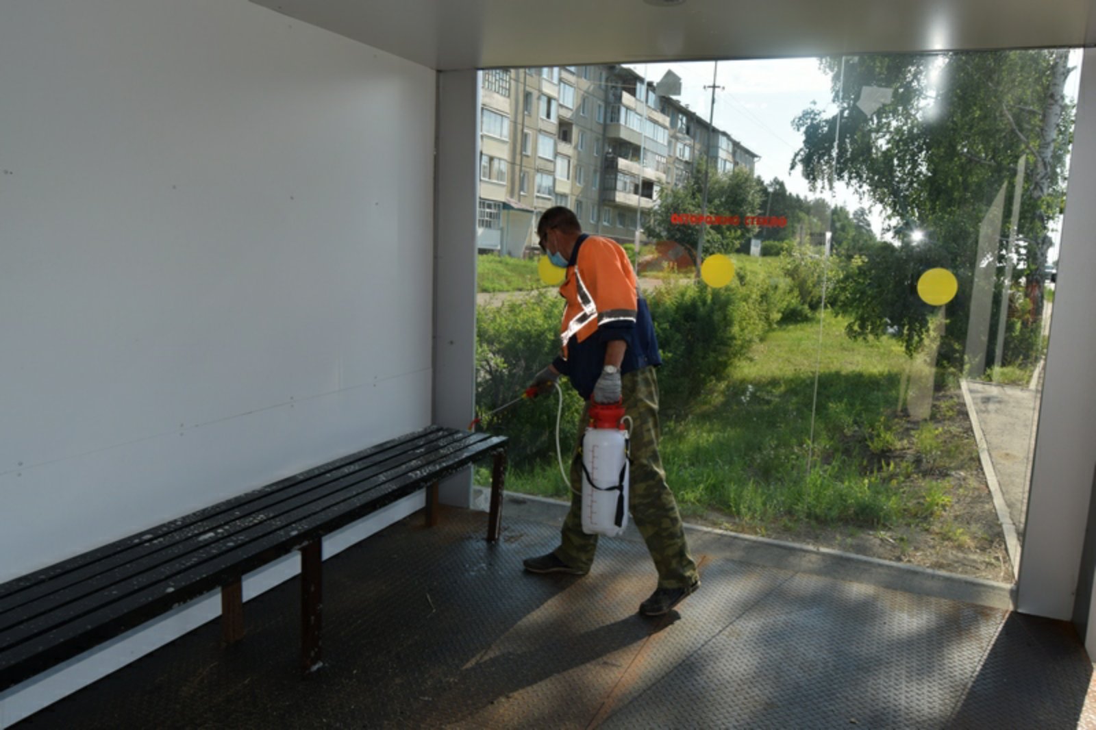 Сегодня Саянская дорожная служба вновь проводит санитарную обработку остановочных павильонов. Работы по санобработке ведутся дважды в неделю по графику.