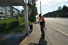 Сотрудники службы обрабатывают скамейки, стойки павильонов, пол и прилегающий к ним тротуар. Для обработки используется специальный профессиональный дезинфицирующий раствор с ароматизатором, так что люди, ожидающие городской транспорт, ощущают не резкий запах дезсредств, а приятный аромат свежести. По словам сотрудников службы, на обработку всех остановочных павильонов расходуется порядка 30 литров раствора.