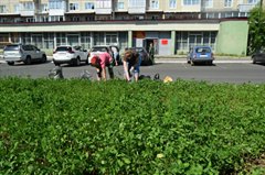Городская администрация вышла с инициативой оказать помощь Саянской дорожной службе в прополке клевера. На разделительной полосе улицы Веры Нуриахметовой работают 16 сотрудников администрации. Сорной травы много – об этом свидетельствуют плотно набитые сорняками мусорные мешки. Работа только начата, но уже сейчас, спустя пару часов, виден результат – там, где потрудились работники администрации, изумрудным ковром кустится клевер.