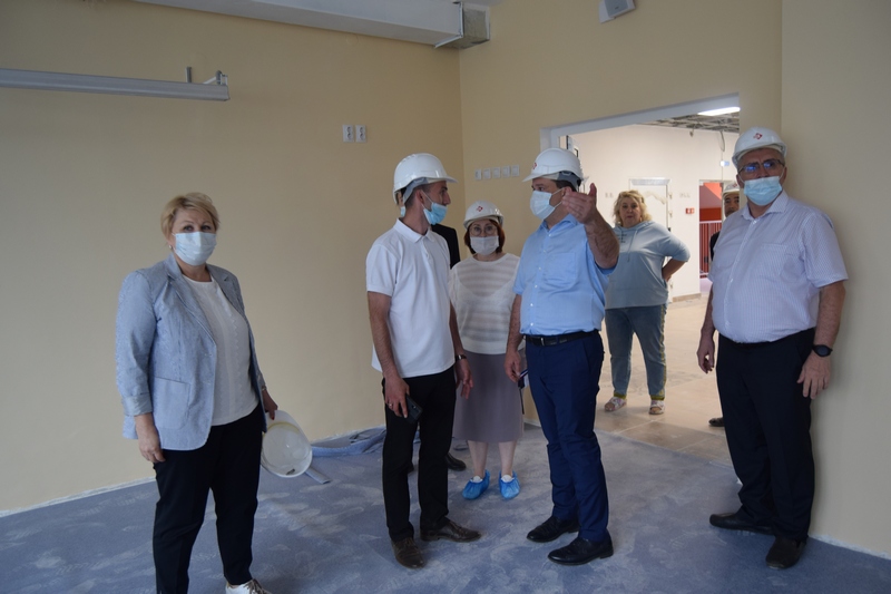 Представители министерства осмотрели школу, в настоящее время там установлено современное технологическое оборудование на пищеблоке. Побывали в актовом, спортивном, хореографическом залах. В хореографическом уже начато художественное оформление стен. Посмотрели учебные кабинеты, большинство из них выкрашено, расстелен износостойкий линолеум. Каждый кабинет готовится сразу «под ключ»: после чистовой отделки и укладки линолеума проводится уборка и расставляется мебель. На территории школы выполнено бетонное основание под асфальт тротуарных дорожек, ведется благоустройство.