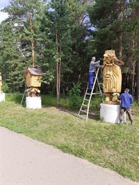 Для защиты дерева от разрушения изделия покрываются специальной краской, после чего обновленные, светлые деревянные скульптуры словно засияли, радуя глаз жителей и гостей города.