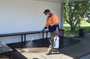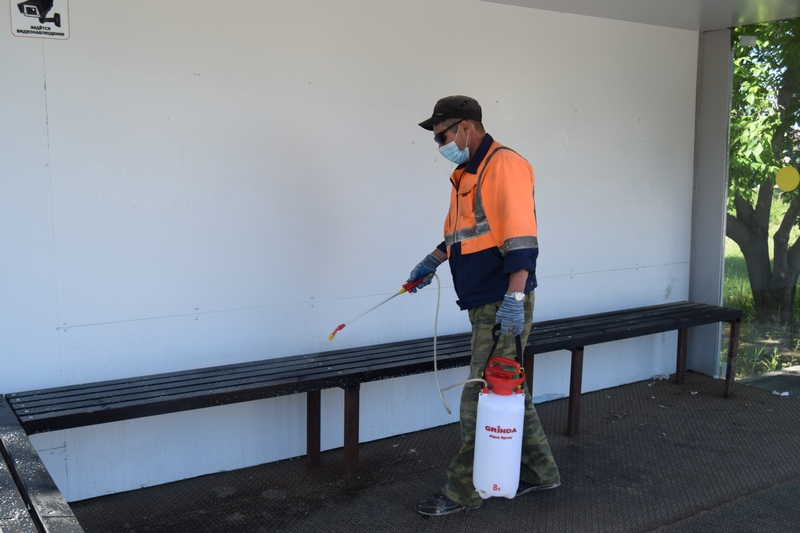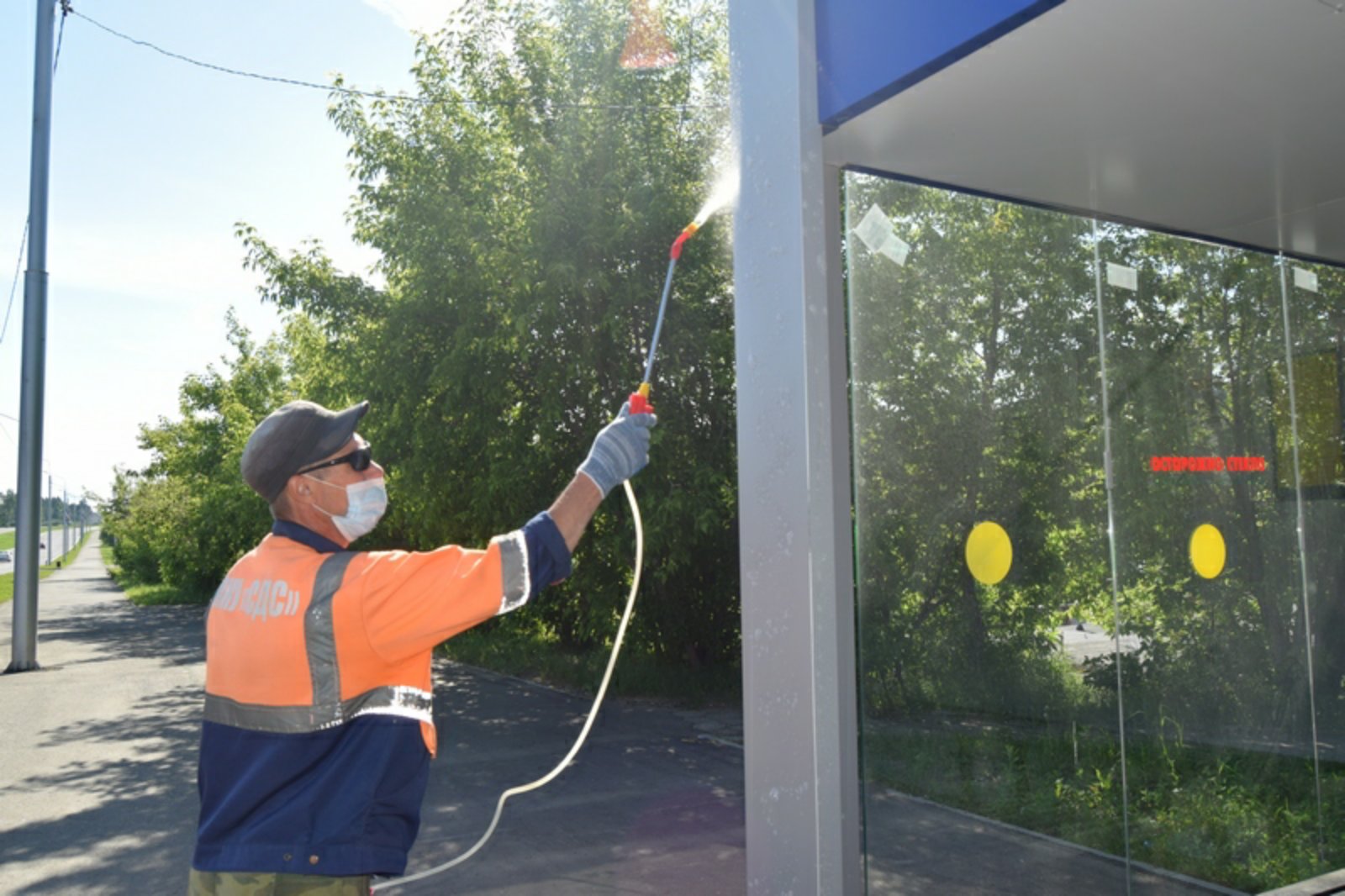 Сегодня в очередной раз работники Саянской дорожной службы обработали остановочные павильоны дезинфицирующими средствами. Два раза в неделю санитарной обработке подвергаются более сорока городских остановочных павильонов.