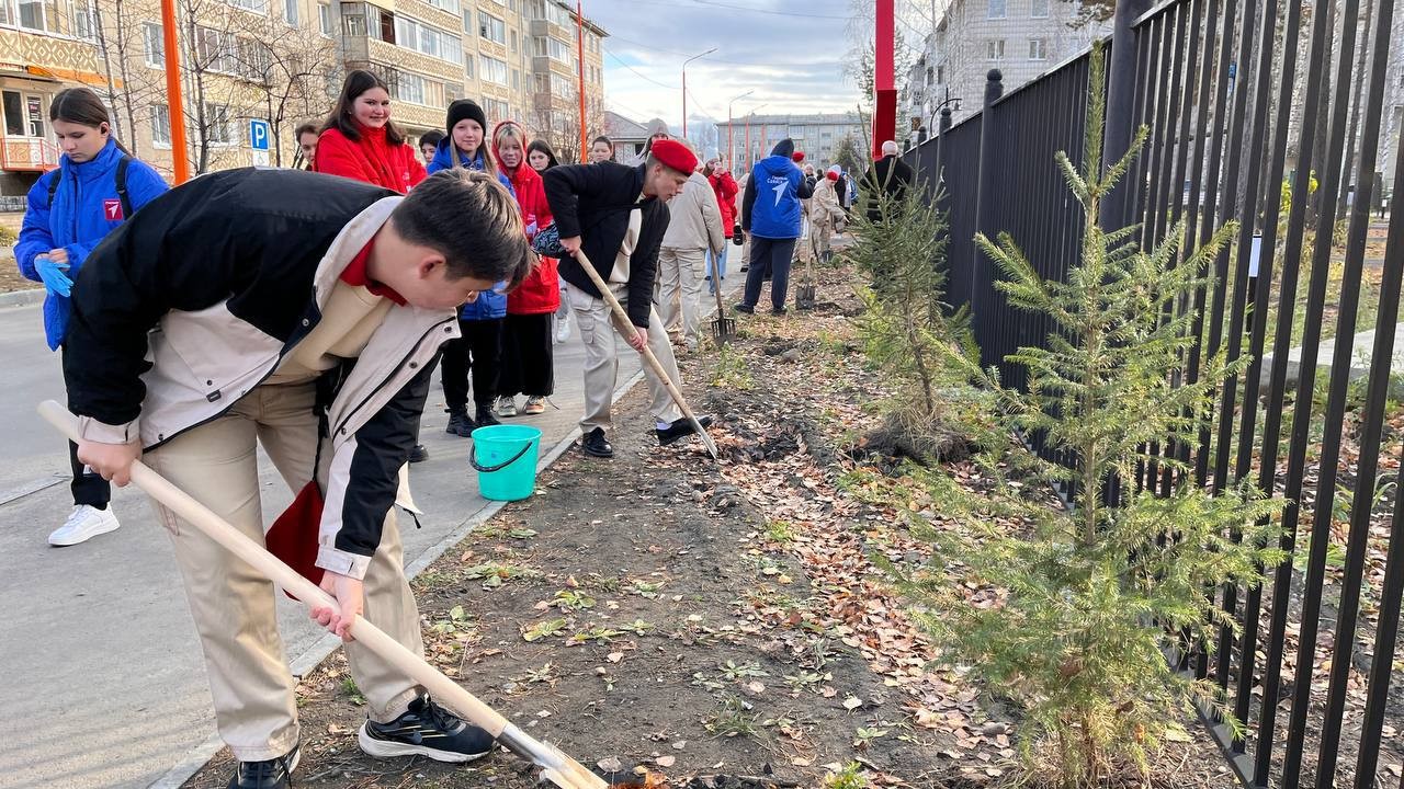 На территории парка «Патриот» было высажено около 40 саженцев ели!