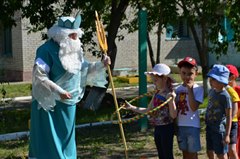 В самый разгар лета, 20 июля, когда на улице стояла жара и ярко светило солнце, они провели развлечение под названием «Нептун в гостях у ребят». Но сначала в гости в «Улыбку» пришел пират – он был обижен, потому что его никто никогда не зовет на праздники и никто с ним не хочет играть, но в этот раз дошколята с радостью составили ему компанию. Поиграли вместе с ним в «Море волнуется раз» – знакомую всем игру, и в тематическую игру на внимание – «Рыбка, камень, водоросли». Когда дети слышали слово «рыбка», складывали ладошки перед собой и бегали, изображая плавающих рыб, когда слышали слово «камень» – садились на корточки, а если звучало слово «водоросли» – поднимали руки вверх и раскачивали ими из стороны в сторону. Ничего нового и сложного, но столько радости у детворы!