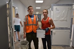 Для того, чтобы окончательно подготовить школу к празднику, понадобится не один день. Внести свою лепту в подготовку школы к открытию вызвались родители и педагоги. С неиссякаемым запасом энергии и сил 32 добровольца моют, чистят, подметают и доводят до блеска кафель, окна и полы.