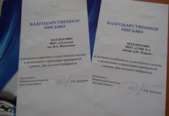 За активное содействие и существенную помощь в организации и проведении мероприятий в рамках Дня молодого избирателя Благодарственные письма Избирательной комиссии Иркутской области получили гимназия им В.А.Надькина и школа №4 им. Д.М.Перова.