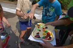 Дочь Нептуна рассказала ребятишкам о любимом занятии морского владыки. Оказывается, ему нравится выкладывать красивые картины из разноцветных камешков. Дети с радостью зажали камешки в маленьких ладошках и отправились в Подводное царство. Отдать подарки Нептуну ребятам не составило труда. В игре «перенеси камешек» победила дружба.