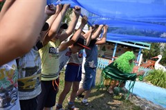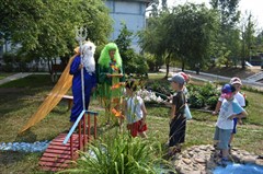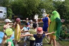 Ребята с нетерпением ждали появления царя морей и океанов, но чтобы разбудить и порадовать дедушку Нептуна, ребятам пришлось потрудиться. Первым испытанием стала игра «назови морского обитателя». Правильно называя обитателей водного пространства, ребята получали разноцветные камешки, которые являлись входным билетом в подводное царство Нептуна. Морская царица обещала взять с собой самых смелых, ловких, кто не боится воды.