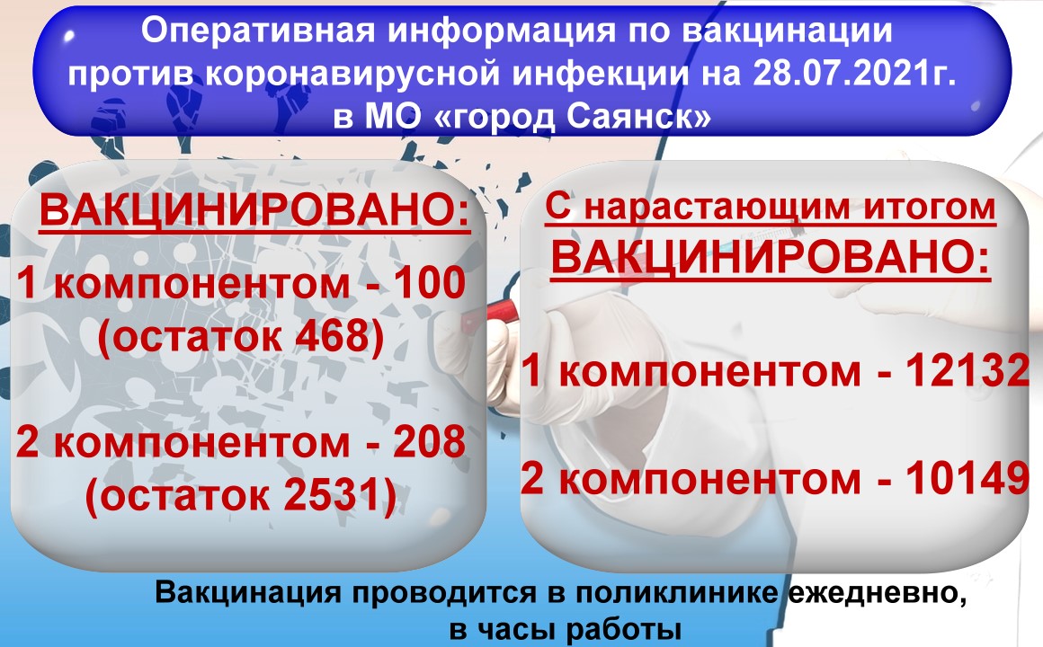 Оперативная информация по вакцинации против коронавирусной инфекции на 28.07.2021г.