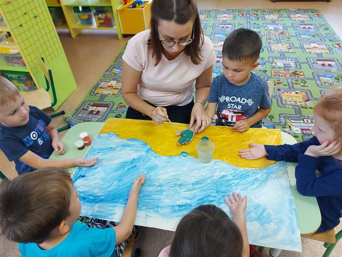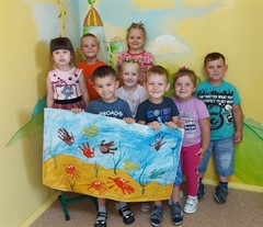 У каждой группы в «Улыбке» рисунки были на свою собственную тематику: кто-то рисовал цветочную поляну, кто-то обителей подводного мира, кто-то –бабочек. Но все рисунки без исключения получились красочными и запоминающимися. Помогали детям в творческом процессе воспитатели – Светлана Журавлева, Валентина Борщова и Оксана Константинова.