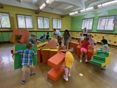 Завершением квест-игры стала локация «Юные строители Саянска». Игра-моделирование особенно понравилась детям: они под музыку принялись за строительство дома мечты. Строительным материалом послужили мягкие кубики. Маленькие саянцы с восторгом принялись за работу.