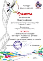 Воспитанник детского сада №23 «Лучик» Денис Белоусов и его воспитатель Анастасия Белоусова приняли участие в региональном конкурсе видеороликов «Мой адрес счастливого детства».