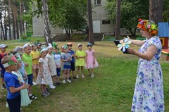 В пятницу, 6 августа, на детской площадке подготовишек встретила цветочница с загадками – с ними они справились легко. Для неё мальчишки и девчонки станцевали замечательный цветочный вальс и поделились с цветочницей своими знаниями о целебных свойствах ромашки, шиповника, подорожника, одуванчика и мяты. Помогли ребята и старенькому садовнику, который уже позабыл названия многих полезных трав и цветов. Разумеется, нашлось и время для подвижных игр и песен.
