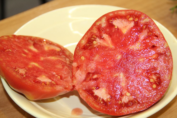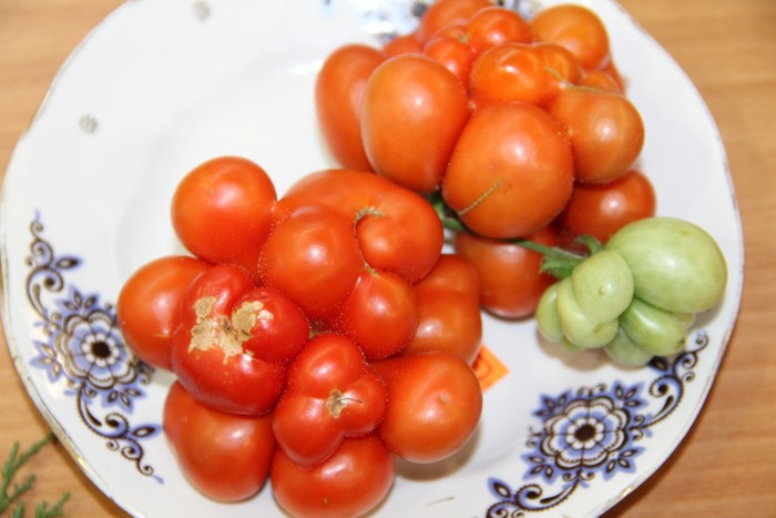 На тарелках лежат маленькие бусины, будто снятые с ожерелья принцессы, а рядом огромные помидоры-рекордсмены – каждый из них с полкилограмма и более весом. Настоящим открытием этого дачного сезона, по словам главного организатора и идейного вдохновителя выставки – Светланы Васильевны Полесье, стал сорт «Хохол гигант» − один такой помидор может весить почти целый килограмм!