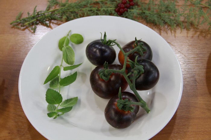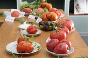 Все они разные не только по цвету и размеру, но и по форме: специально для перфекционистов − томаты идеально круглые, есть и похожие на лимон, сливовидные и напоминающие сердце… У каждого сорта свой, непохожий на другие, вкус. Рядом с «выставочными экземплярами» лежали уже порезанные на дольки мясистые томаты. Можно взять кусочек и смаковать, ощущая искристые и сладкие ноты.