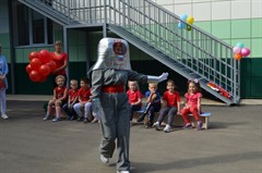 Так, дети с удовольствием играли в прятки под импровизированным полотном в цвета триколора, читали стихи, пели песни и играли с космонавтом! Дети узнали о том, что мы живем в космической державе и о том, что в нашей стране жили на весь мир знаменитые композиторы и писатели. Многие хотели бы, когда вырастут стань такими, как они и прославить свою малую родину – город Саянск.