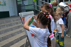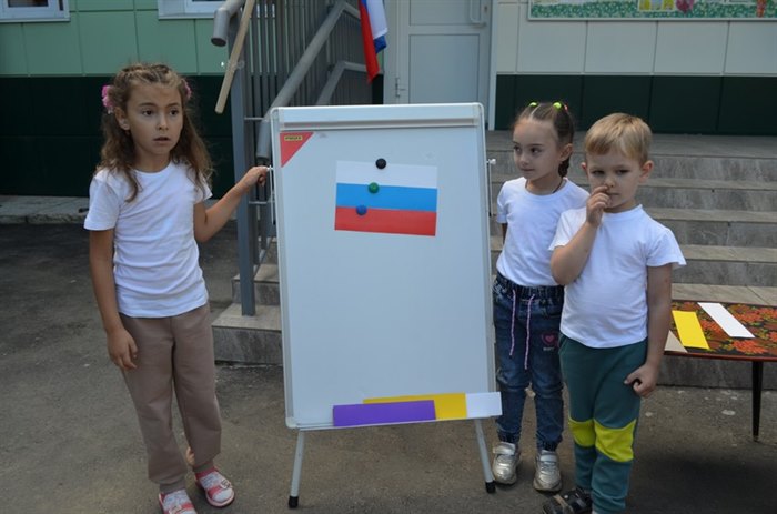 Для ребят старшего дошкольного возраста 19 августа был организован музыкально-познавательный праздник «Россия − Родина моя», в нем приняли участие три группы. По сложившейся традиции отзывчивые и активные родители для своих детей приобрели воздушные шары в цвет государственной символики и нарядили их в советующую одежду. Со стороны было очень приятно смотреть на них– все очень нарядные с широкой улыбкой на лице. Ребята танцевали и подпевали звучащему на всей территории детского сада гимну молодежи «Кто, если не мы».