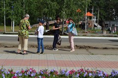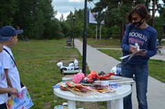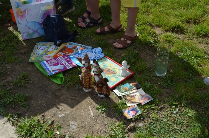 Сегодня, 19 августа, у молодых людей был первый официальный рабочий день. Педагогический коллектив четвертой школы подготовил место для торговли у городского фонтана. Редакции периодических изданий города предоставили в качестве товара свои свежие газеты: «Саянские зори» – 50 штук, «Новые горизонты» – 25 штук. Продавали ребята и книги, и раскраски, статуэтки и мягкие игрушки, – словом все то, что им самим уже не особо нужно, а кому-то может принести пользу. Товаров было очень много, одного столика даже не хватило – раскладывались прямо на траве, а прессу брали в руки и предлагали прохожим неподалеку. Кто-то проходил мимо, кто-то обращал внимание и не жалел денег на благое дело.
