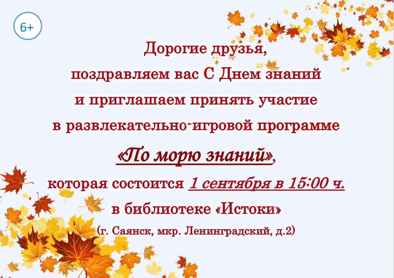 1 сентября. Развлекательно-игровая программа "По морю знаний"