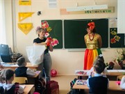 Так, 3 сентября в гости к первоклассникам из саянской школы № 5 заглянули необычные герои − Сентябринка и Нехочуха. Они поздравили малышей с началом учебного года и приготовили для них интересную викторину, игры и конкурсы.