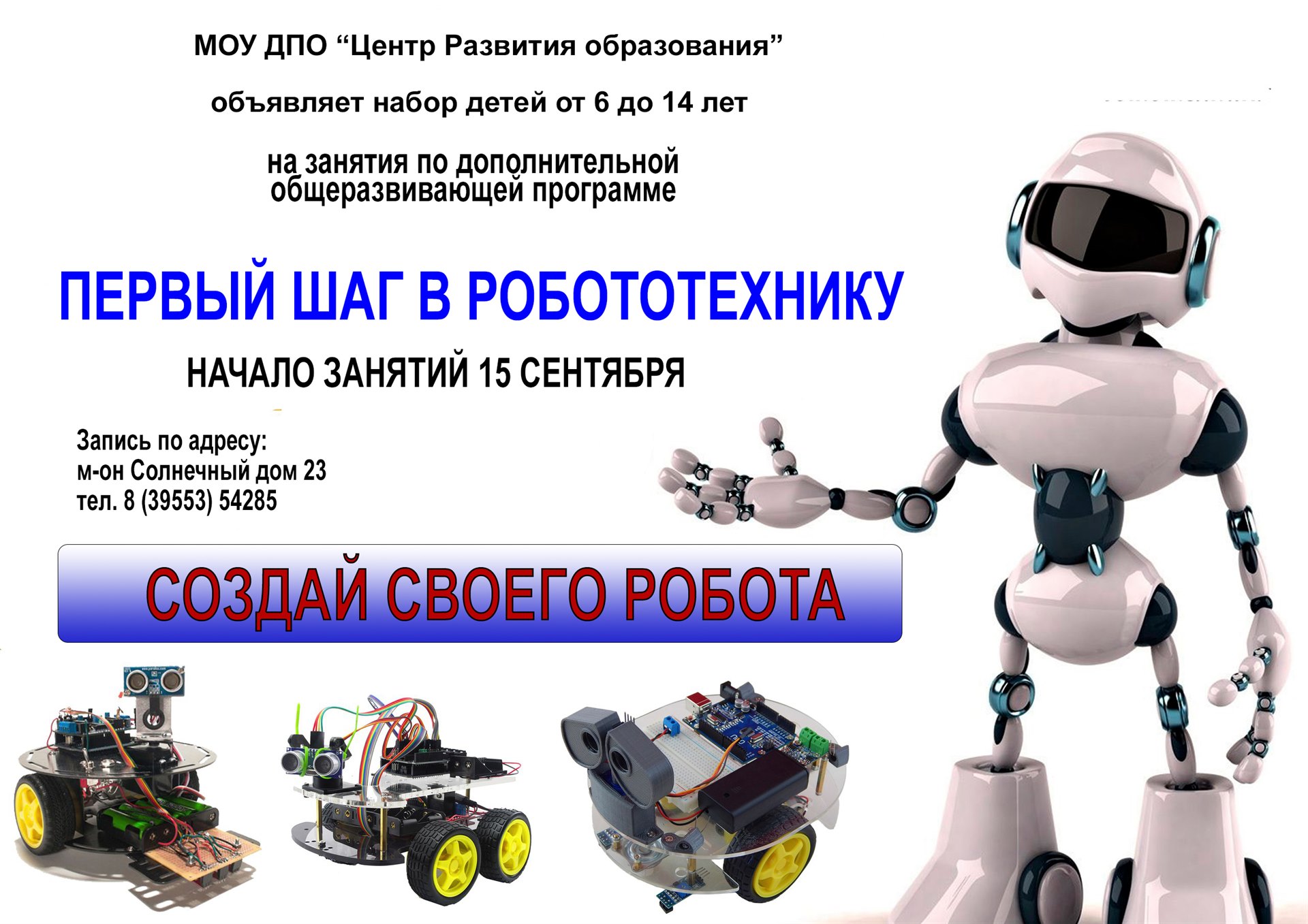 Центр развития образования приглашает детей от 6 до 14 лет сделать ПЕРВЫЙ ШАГ В РОБОТОТЕХНИКУ и создать своего робота!