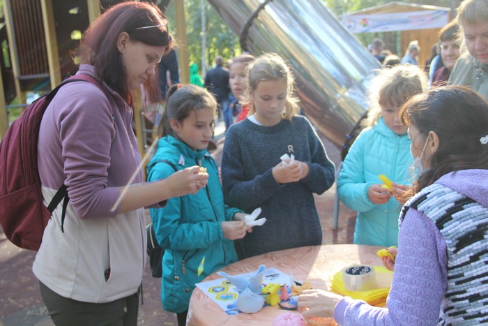 Была представлена и выставочная площадка с множеством работ, любой желающий мог ознакомиться с поделками и тем самым определиться с выбором творческого обеднения. Не обошлось и без игрового формата: ребят зазывали на фантазийные шахматы, а также ждали на игру в прятки и развлечение с мячом.