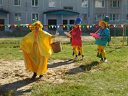 Ни одна ярмарка не обходится без праздничных гуляний. Скоморохи приглашали детей на игры, красавица Осень кружилась с девочками в танце с разноцветными листьями, а мальчикам предложила перетягивать канат. Веселый клоун поиграл со всеми детьми на музыкальных инструментах. Великолепной праздничной атмосфере способствовала солнечная погода, задорные ярмарочные песни, тематические композиции.