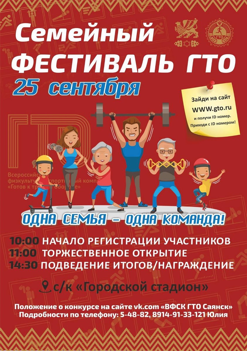 Приглашаем к участию в ежегодном семейном фестивале ГТО. В этом году фестиваль проводится совместно с Саянским благотворительным фондом при поддержке фонда Президентских грантов.
